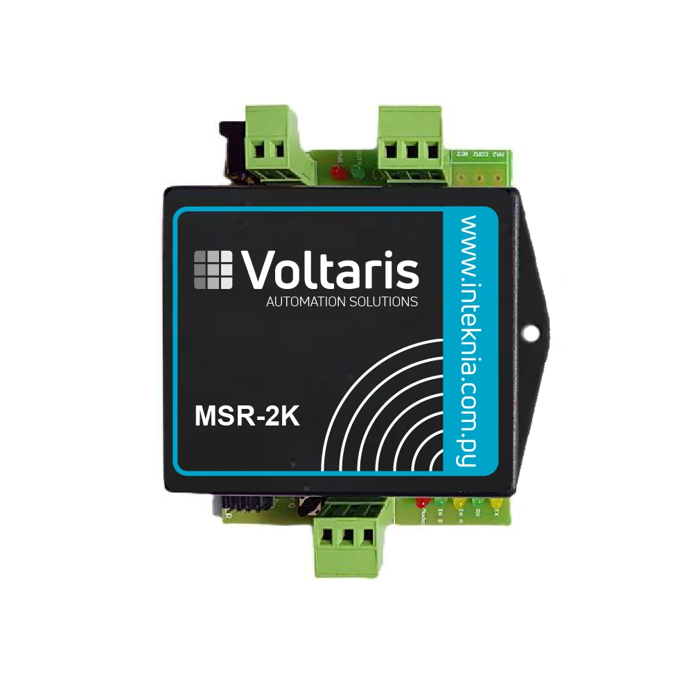 El sistema de telecomando punto a punto está diseñado para la activación y control remoto de dispositivos eléctricos en aplicaciones industriales, agrícolas y urbanas. Se compone de dos equipos: el MSR2K que opera como Master, que inicia las transmisiones y recibe señales por medio de 2 entradas de contaco seco optoaisladas, y el ESV2K que opera como Esclavo y es quien ejecuta los comandos recibidos activando sus 2 salidas de relé 250VCA NC/NA.