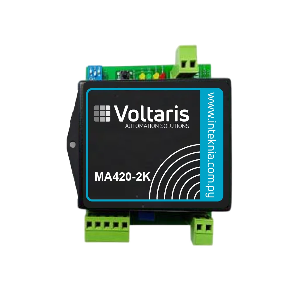 El transceptor MA420-2K es un dispositivo diseñado para recbir la señal de sensores 4-20mA, previamente capturadas y digitalizadas por el transceptor ES420-2K, y reconvertirlas a la señal analógica original. El transceptor MA420-2K es compatible con enlaces inalámbricos con un alcance de hasta 2 km en espacio libre.